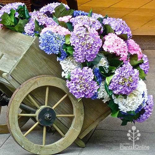 Our assortment includes mostly Mopheads: the most recognisable variety with large dome-shaped clusters of pastel flowers in pink or blue, occasionally white; and sometimes Lacecaps: as the name suggests, a delicate flowering form with lacy open clusters of florets. They are both beautiful and are sold as assorted. Treat yourself to a little surprise!